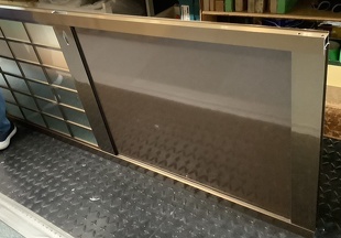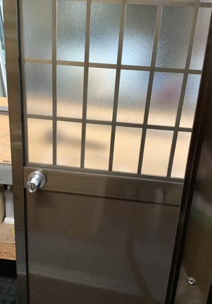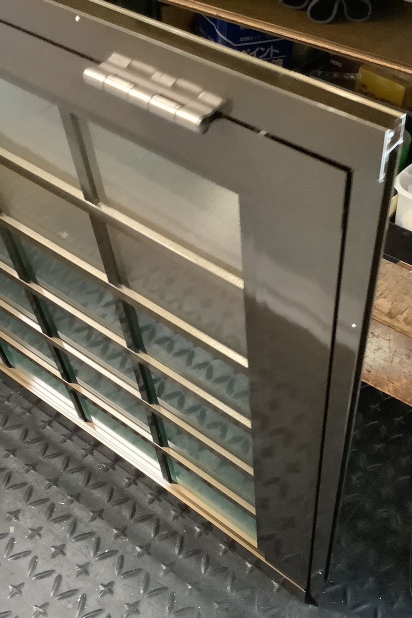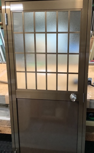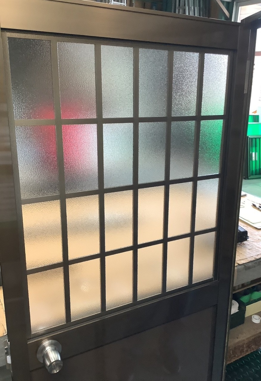 ロンカラーガラスドア 上部ガラスへアルミ組子井桁格子を取付紹介