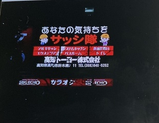 上を見ると、協賛企業の告知が流れてて、その中にわが高知トーヨーが流れてました。