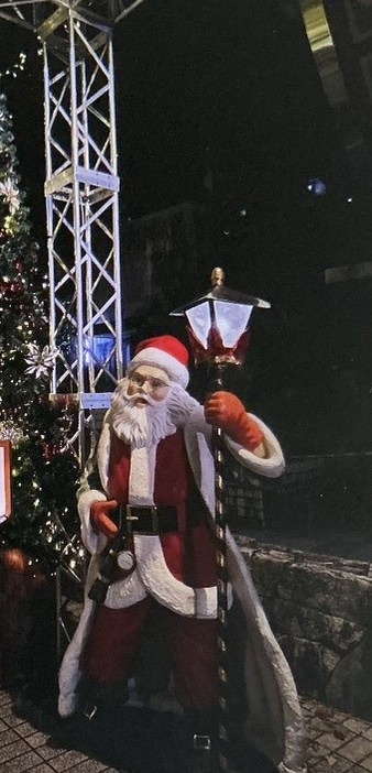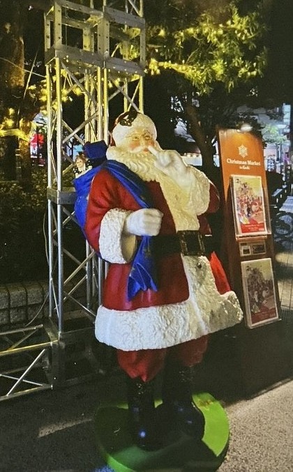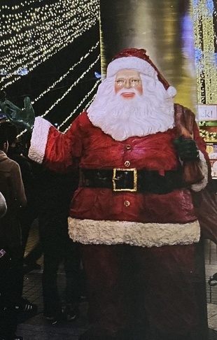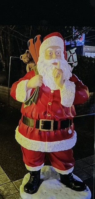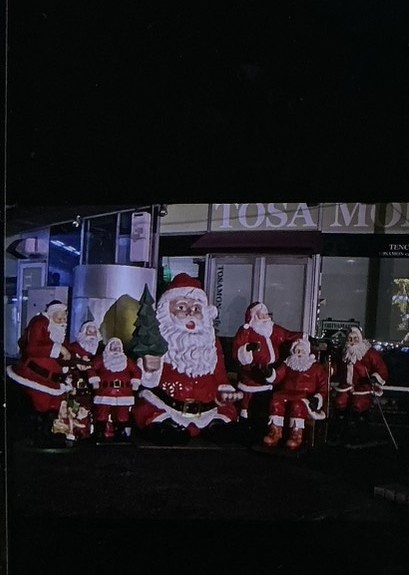 このサンタクロース集合写真は、撮った時は思わなかったのですが、画面が暗いと怖いです。