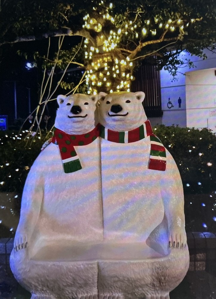 中に入ってみると出店もありましたが、クマさんやサンタクロースを撮ってみました。