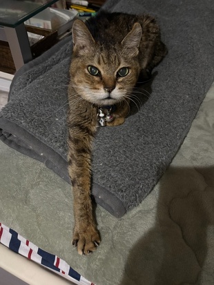 先住猫が怖くて、いなくてもいつもマットの下にかくれんぼ