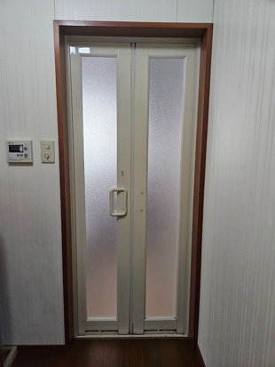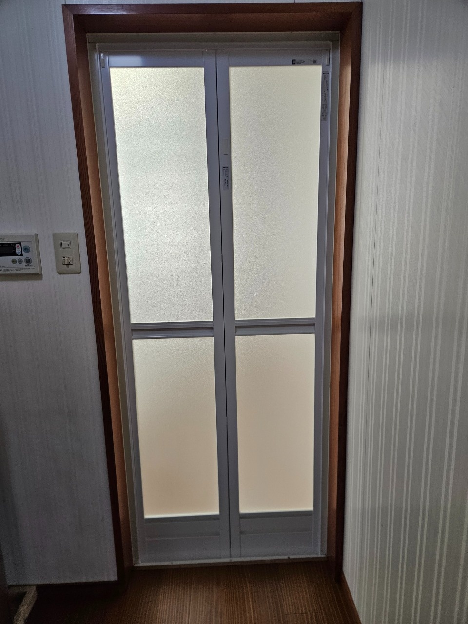O様邸【高知市】浴室中折ドア工事 今回ご紹介させて頂くのは、浴室中折ドアのカバー工法です。 施工前 施工後 既存の扉の開閉不良の為、交換を希望されました。最初に扉本体の撤去。下枠レールの撤去の後、新規枠の取付になります。浴室側と脱衣場の既存枠と新規枠の間をコーキング打ちをしてから扉の吊り込みをしました。約3時間半で完了になりました。 令和8年1月15日 T・N
