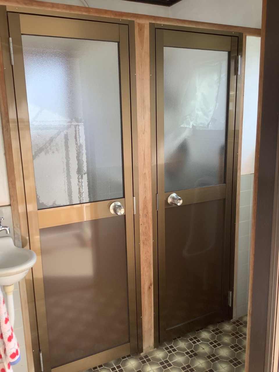 Y様邸【四万十町】ドア取替工事 今回は木製建具からロンカラーガラスドアへの変更についてご紹介します!表面の木が剥がれてきており、建付けが悪くなったせいで開閉に抵抗を感じるとのことで取替することになりました。 施工前 施工後 作業内容自体は簡単で、木製建具を丁番から外した後新しいドアを建付けを見ながら取付て完了です!現場の状況にもよりますが、今回の現場では2か所合わせて30分ほどで完了することができました!ドアの開閉に苦労したり、建付けが悪くなった等のことがあれば気軽にご相談ください!令和8年1月31日 N・M