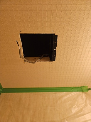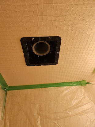 某ハイツ【朝倉】トイレの天井埋込換気扇の取替 今回紹介させて頂くのは、トイレの天井埋込換気扇の取替です。 施工前 換気扇撤去 新規開口 ダクト接続 本体取付 施工後 トイレの天井埋込換気扇から空気が戻ってきて臭いが抜けない状態でした。急遽取替する事になりました。築30年以上経っていたので本体内部にホコリが溜まった状態でした。交換の目安は3時間前後になります。 令和8年2月15日 T・N
