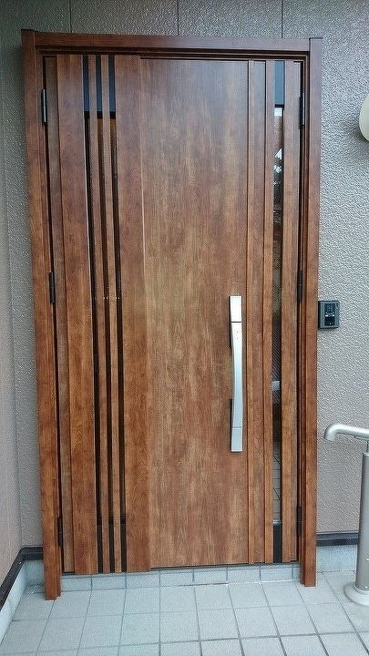 今回ご紹介するお宅の玄関ドアは木製のランマ付き親子ドアですがドアの下に隙間が有り雨水が入ってきたり、隙間風が入り玄関の中が寒かったそうです。またランマのガラスが透明だったのでプライバシーも気になっていたそうです。